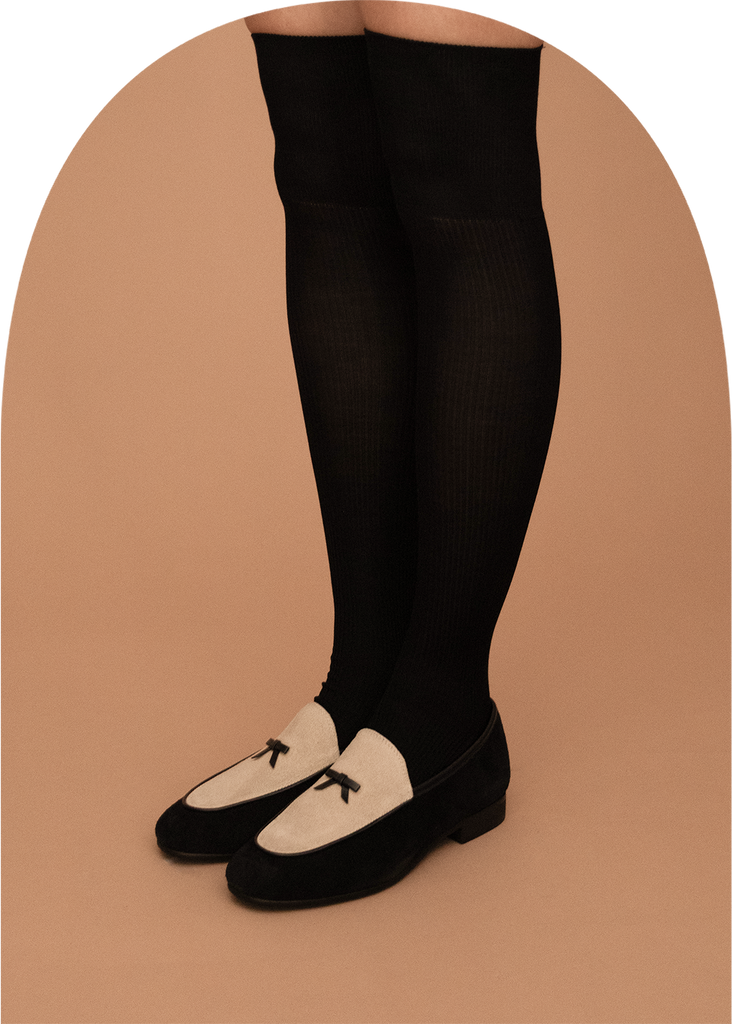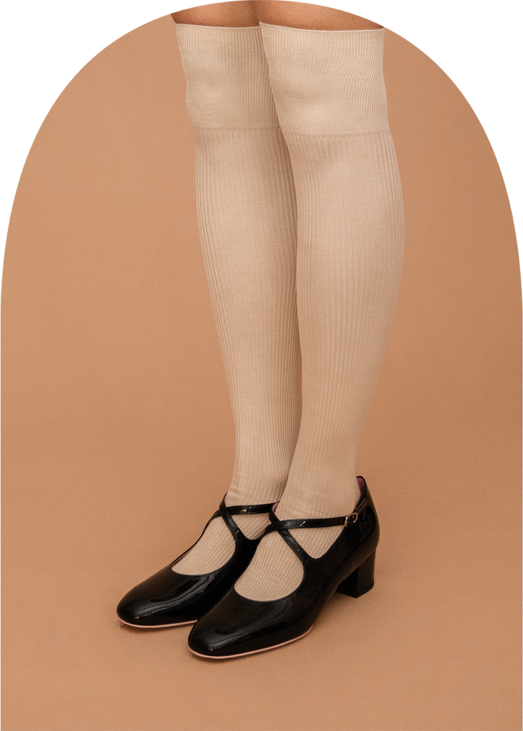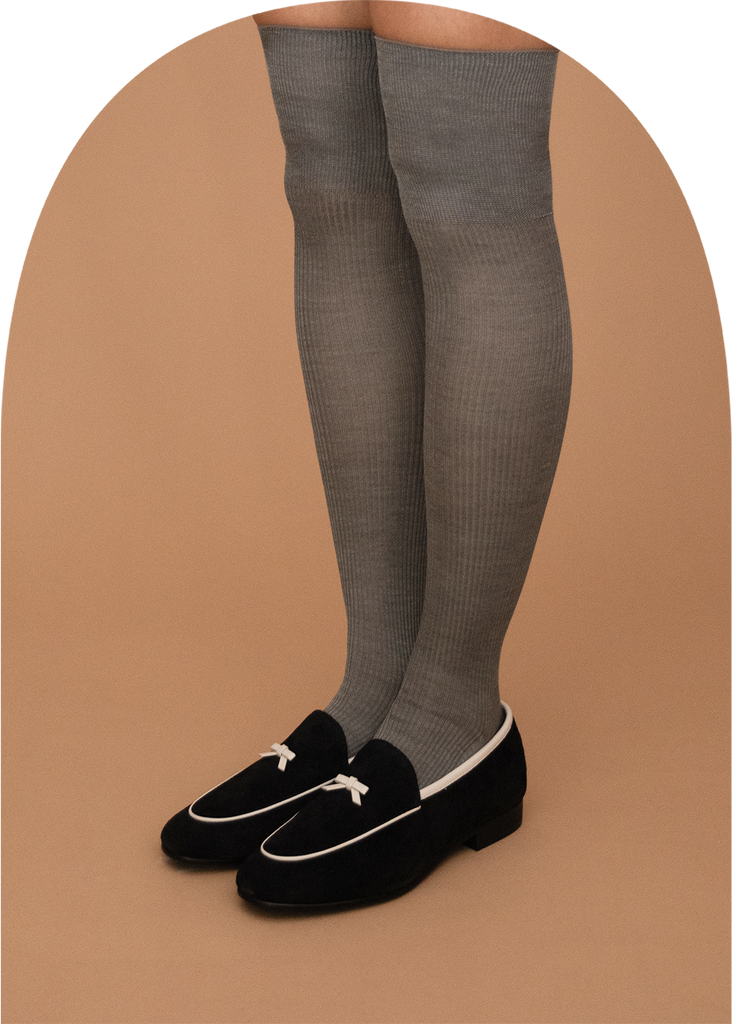 罗纹针织高袜子使用优质100%丝线作为前线。丝绸是功能最强的材料之一,更不用说美丽的着色,不会与其他材料一起出现materials.In 除了它的高热保持性和水分保持性,它是最好的材料,妇女谁也削减紫外线。